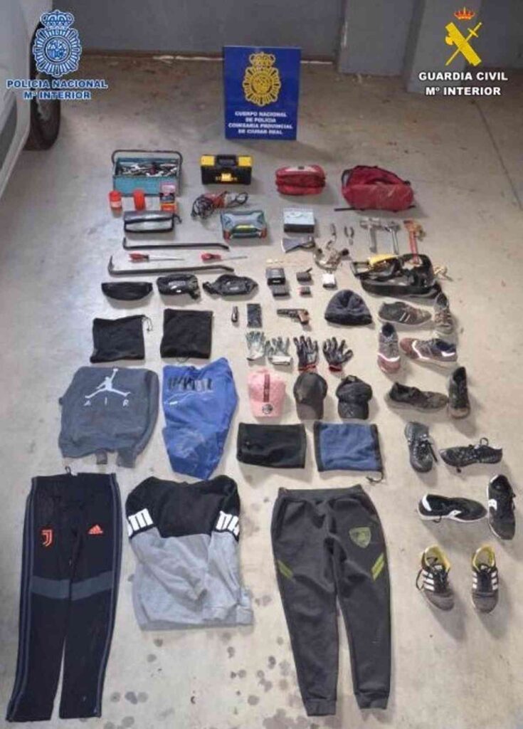 Debido a la cantidad de robos y el patrón de actuación común, la Policía Nacional y la Guardia Civil unieron esfuerzos para localizar y vigilar a los presuntos autores. Los dos inmuebles localizados en Porzuna (Ciudad Real) fueron registrados con autorización judicial, encontrándose gran parte de los bienes robados, herramientas, una pistola simulada y los dispositivos electrónicos de arranque.