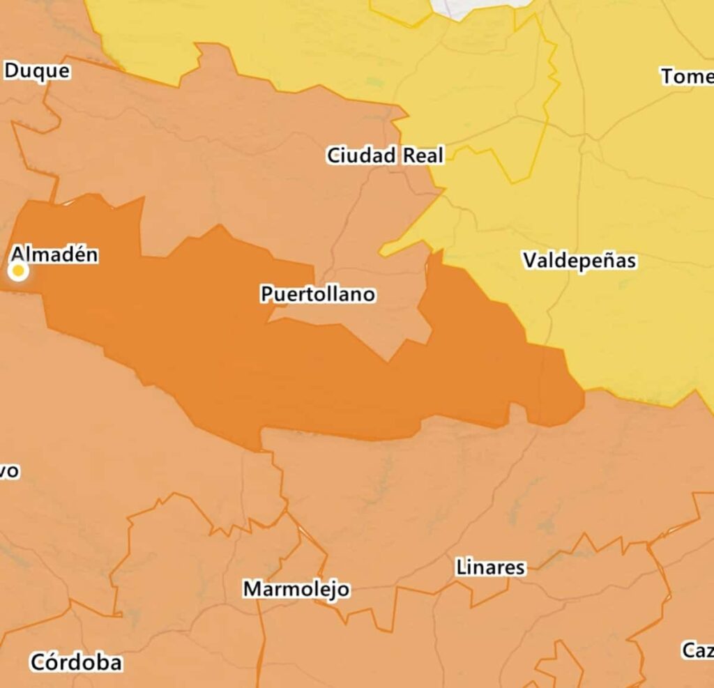 La comarca de Puertollano (Ciudad Real) se encuentra en ALERTA NARANJA para los días 7, 8 y 9 de agosto, por temperaturas de hasta 40 ºC, desde las 13:00 horas hasta las 21:00 horas, según la alerta meteorológica de la AEMET. Se estima que la ola de calor durará toda la semana. La concejalía de Seguridad Ciudadana del ayuntamiento de la localidad ha informado sobre esta situación.