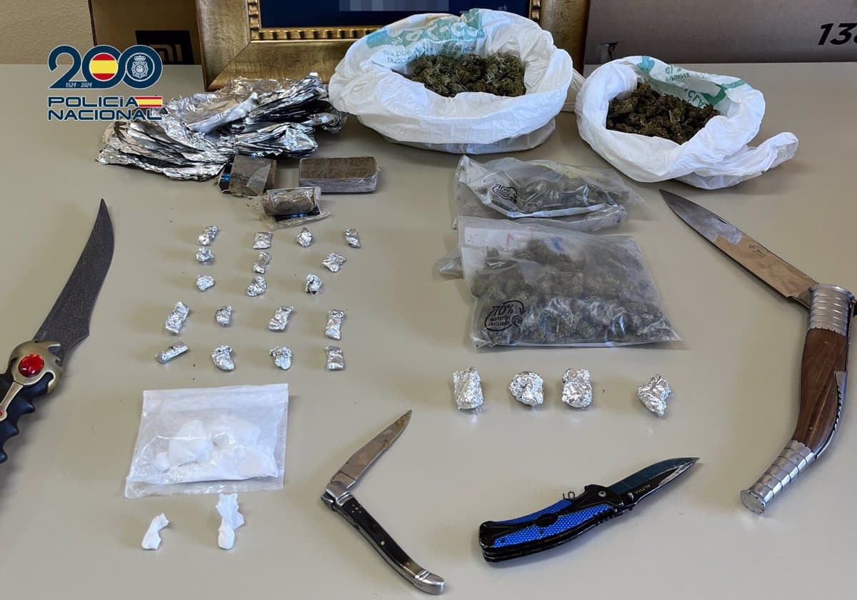En el registro, se localizaron sustancias ilegales, que incluían 37 gramos de cocaína, 308 gramos de marihuana y 187 gramos de hachís, además de 3.070 euros en efectivo. Este nuevo intento de tráfico desde la misma ubicación ya había sido frustrado en junio, cuando el individuo y su pareja fueron detenidos y se confiscó una cantidad considerable de drogas, que superaba los 5 kilogramos de marihuana y cerca de 1,1 kilogramos de hachís, junto con otros estupefacientes, objetos robados, armas blancas y un chaleco antibalas.