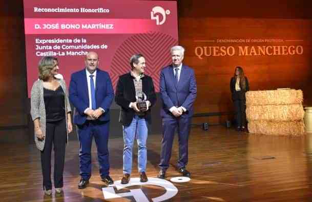 La gala de celebración de las cuatro décadas de la DOP Queso Manchego ha servido a la organización para premiar el trabajo en pro del reconocimiento de este producto dentro y fuera de las fronteras de la región.  Por ello, se le ha concedido la Presidencia de Honor de la DOP Queso Manchego al ex presidente de Castilla-La Mancha, José Bono, por su trabajo en los inicios de la Autonomía en la defensa de este producto.