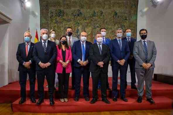El presidente de Castilla-La Mancha, Emiliano García-Page, ha presidido el acto de firma de convenios con los presidentes de las diputaciones provinciales; Santiago Cabañero, de la de Albacete; José Manuel Caballero, de Ciudad Real; Álvaro Martínez Chana, de Cuenca; José Luis Vega, de Guadalajara; y Álvaro Gutiérrez Prieto, de Toledo.