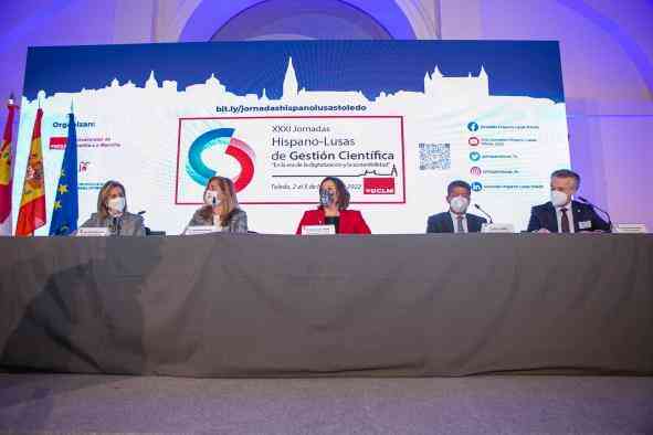 El Centro Cultural San Marcos de la capital regional ha acogido en la tarde de hoy el acto inaugural de unas jornadas que reúnen, desde hoy y hasta el próximo sábado, a más de 400 investigadores de universidades españolas y portuguesas, y de países como Mozambique o Brasil, de ámbitos como las empresas, la economía financiera, la contabilidad y el marketing, en unas sesiones que suman 190 trabajos presentados sobre materias tan en boga como la digitalización y la sostenibilidad, retos de la sociedad en el presente, y que abordará diferentes trabajos y perspectivas hasta el 21 áreas temáticas. La inauguración de esta XXXI edición de las Jornadas Hispano-Lusas de Gestión Científica ha corrido a cargo de la consejera de Economía, Empresas y Empleo, Patricia Franco; la vicerrectora de Coordinación, Comunicación y Promoción de la UCLM, Leonor Gallardo; el presidente del Comité Científico Español de las jornadas, Antonio Leal; la presidenta del Comité Científico Portugués de las jornadas, Helena Maria Baptista; y el presidente del Comité Organizador, Felipe Hernández Perlines.