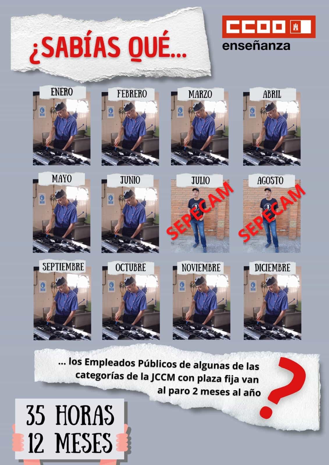 CCOO-Enseñanza lleva años denunciando la relación contractual de los Auxiliares Técnicos Educativos, Intérpretes de Lengua de Signos y Personal de Cocina de centros de enseñanza públicos de CLM, que son los únicos colectivos laborales de la JCCM que, con sus oposiciones aprobadas, mantienen contratos a tiempo parcial y sólo de diez meses al año.