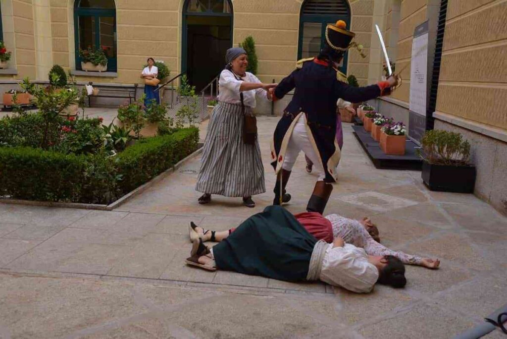 Como aperitivo de lo que será el Francisquete 2022, los miembros de la Asociación Cultural la Partida de Camuñas, que son quienes realizan las recreaciones históricas y algunos de quienes asistían caracterizados al acto de presentación, convirtieron el patio central de la Diputación de Toledo en un escenario más recreando uno de los encontronazos entre el ejército francés y el pueblo de Camuñas que tuvieron lugar en los convulsos años de la Guerra de la Independencia.