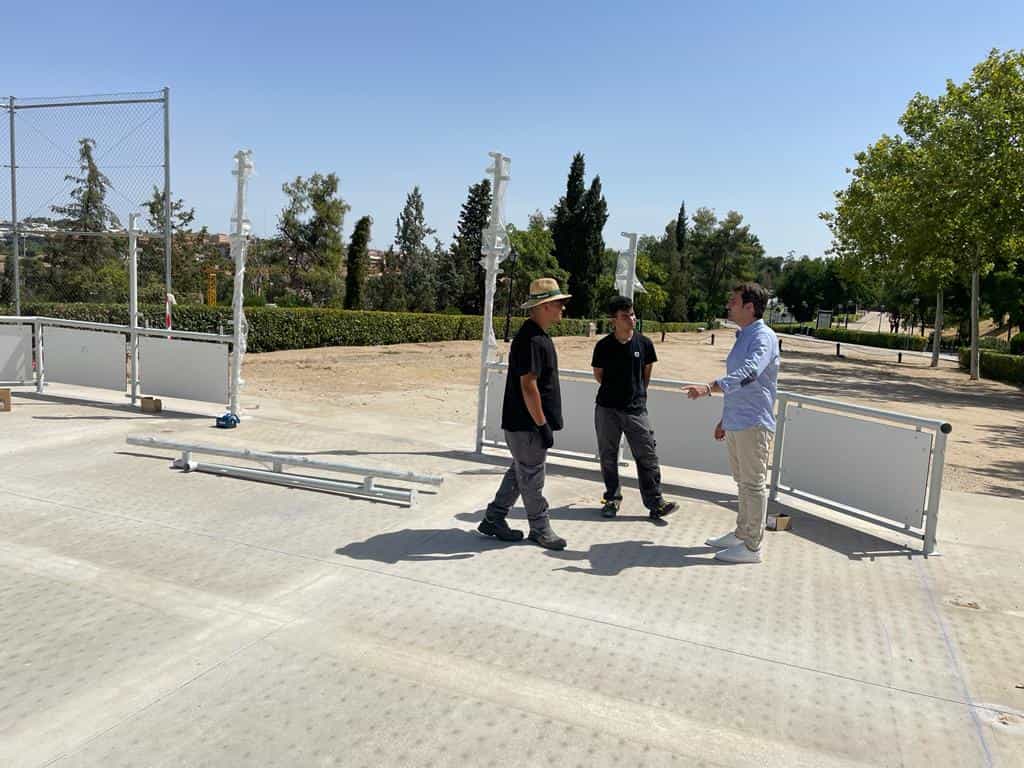 El concejal de Deportes de Toledo, Pablo García, ha visitado las obras que se están llevando a cabo en las pistas multideporte de Recaredo y la plaza de Aquisgrán para conocer de primera mano la marcha de los trabajos de reparación y puesta a punto de 14 de estas instalaciones repartidas por todos los barrios de la ciudad.