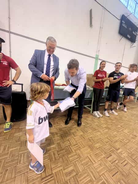 En el pabellón anexo a la pista de atletismo del barrio del Polígono, los pequeños han recogido una camiseta, cortesía de Soliss, de manos de del director comercial de la entidad aseguradora, José Javier del Cerro, así como una medalla y un diploma por su participación en este campamento.