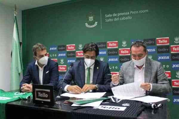 El concejal de Deportes, Pablo García, ha asistido este martes en las instalaciones del Campo de Fútbol del Salto del Caballo a la firma del acuerdo de patrocinio del Grupo Tello Alimentación y el Club Deportivo Toledo, una firma que supone un espaldarazo más al club verdiblanco en este inicio de temporada. En el acto han participado el responsable de la firma de alimentación, Paulino Tello, así como el presidente del club, Joaquín Sánchez-Garrido. De esta forma, el Grupo Tello Alimentación se convierte en Main Sponsor del primer equipo masculino del Club Deportivo Toledo.