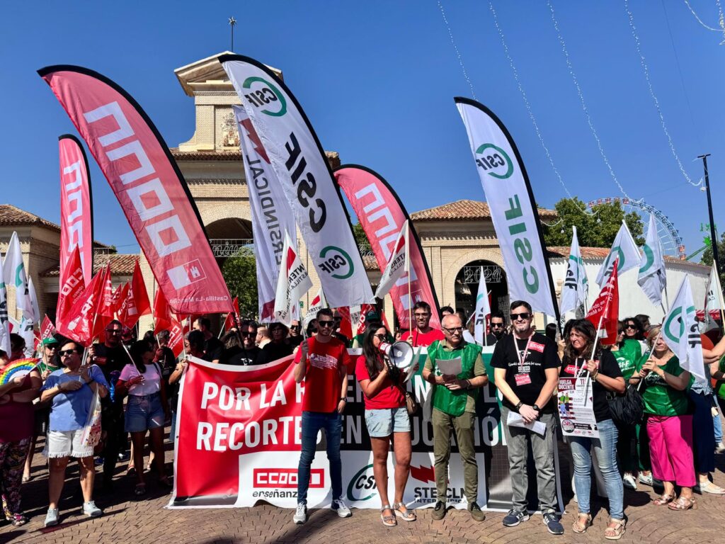 “Porque si nos cierran la puerta a la negociación solo nos queda la movilización”. Este ha sido uno de los principales motivos que han llevado a STE-CLM, CCOO y CSIF a empezar el curso 2024/2025 con una huelga en todas las provincias de Castilla-La Mancha.