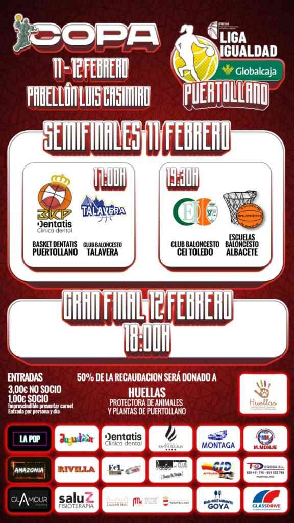 Las entradas para los socios será de un euro y para no socios de tres euros. El 50% de la recaudación será donado a la protectora de animales “Huellas”, como ha subrayado Angel Aguilar, presidente del Basket Dentatis Puertollano, en un torneo en el que habrá un especial recuerdo a “Antoñito” y “queremos que esté nosotros”.