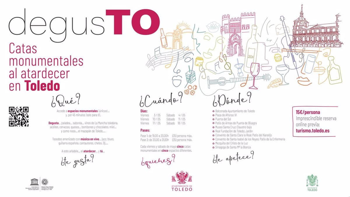 «Degusto» es una colaboración entre el Patronato de Turismo y la Diputación Provincial de Toledo, y se llevará a cabo los viernes y sábados del mes de mayo. Los asistentes tendrán la oportunidad de visitar lugares emblemáticos como la plaza de Alfonso VI, la Puerta del Sol, el patio de armas de la Puerta de Bisagra, así como varios patios y jardines de relevancia cultural y arquitectónica que generalmente no están abiertos al público.