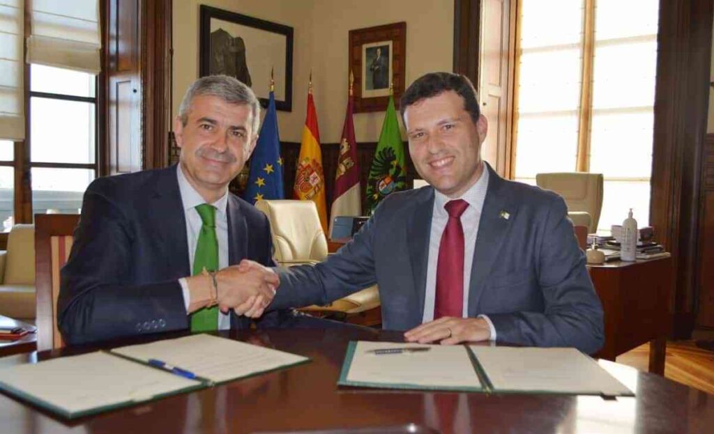El presidente de la Diputación de Toledo, Álvaro Gutiérrez, y el alcalde de Fuensalida, Santi Vera, han suscrito el convenio que regula la colaboración de la Institución provincial con el Ayuntamiento.