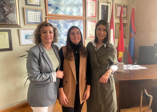 La delegada provincial de Igualdad, Ana Olmeda, se ha desplazado hasta Villanueva de la Jara para felicitar a Carmen Manzano, en un encuentro que contó también con la presencia de la alcaldesa, Johanna León.