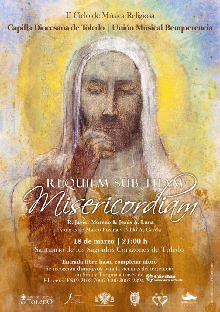 La Misa de Réquiem «sub tuam misericordiam» de los autores R. Javier Moreno y Jesús A. Luna, será presentada por la Capilla musical de la Diócesis de Toledo, en Talavera de la Reina y Toledo, este fin de semana. El formato litúrgico será presentado el viernes 17 de marzo a las 20:00 en la Basílica de Nuestra Señora del Prado, en Talavera de la Reina, en una Misa en sufragio por los difuntos de las cofradías y hermandades de la ciudad de la cerámica. Participarán solistas, el conjunto instrumental y coro de la Capilla musical y el órgano litúrgico del templo, con la dirección de R. Javier Moreno y la intervención del organista titular de la formación, Jesús A. Luna, ambos coautores de la obra.
