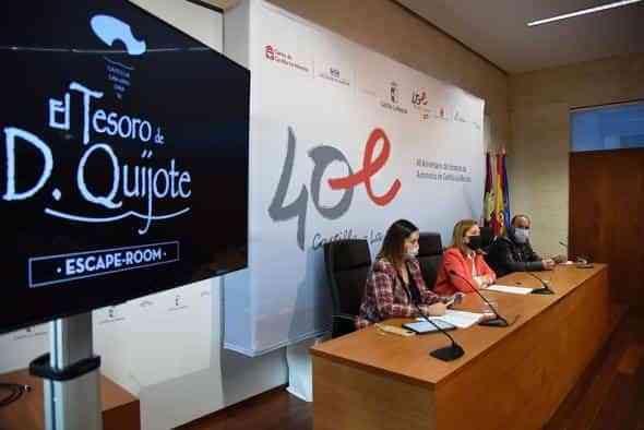 La consejera de Educación, Cultura y Deportes, Rosa Ana Rodríguez, ha presentado este lunes la primera de las 300 actividades culturales que se van a desarrollar a lo largo y ancho de la geografía regional para conmemorar el 40 aniversario de la aprobación del Estatuto de Autonomía de Castilla-La Mancha. Se trata del proyecto ‘escape room’ llamado ‘El tesoro de Don Quijote’. Una iniciativa, ha dicho, “que tiene como objetivo dar a conocer, de una forma diferente y divertida, los grandes tesoros que tiene Castilla-La Mancha”.