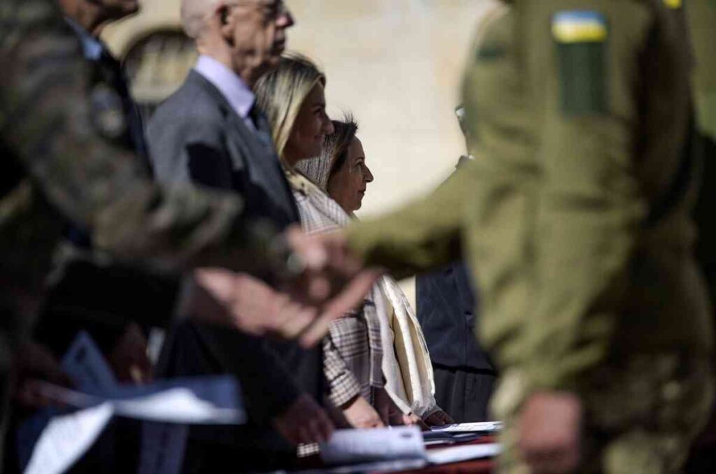 En la Academia de Infantería de Toledo, la ministra de Defensa, Margarita Robles, ha encabezado una ceremonia donde se han otorgado diplomas a 200 militares ucranianos que han culminado satisfactoriamente un curso de formación básica. El curso fue impartido en la Unidad de Formación de Combate de la Misión de Asistencia Militar de la Unión Europea, bajo la supervisión del Mando de Operaciones, y duró casi cinco semanas intensivas, con sesiones diarias de 10 horas durante seis días y medio. Los militares recibieron capacitación en cinco áreas, desde instrucción básica hasta combate en zonas urbanas, pasando por tiro, lucha contra explosivos y primeros auxilios.