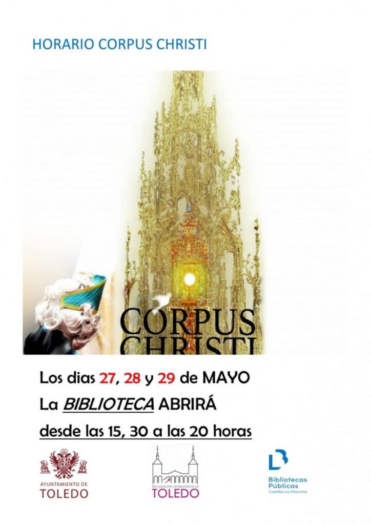 Durante la celebración del Corpus Christi en la ciudad de Toledo, la biblioteca municipal ajustará su horario de atención al público para adecuarse a este importante evento local.