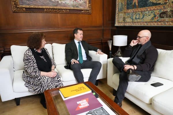 En un afectivo evento celebrado hoy en el Ayuntamiento de Toledo, el alcalde de la ciudad, Carlos Velázquez, junto a la concejal de Cultura, Ana Pérez, recibió al destacado fotógrafo y cineasta toledano, Pepe Castro. La reunión tuvo como propósito felicitar a Castro por su reciente reconocimiento en los premios Goya, donde se alzó con el galardón al mejor cortometraje documental por su participación en la obra ‘Semillas de Kivu’.