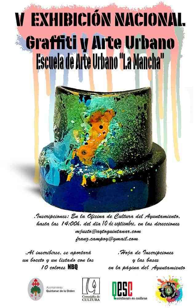 Desde el Ayuntamiento de Quintanar de la Orden y la Escuela Municipal de Pintura y Arte Urbano, se organiza para los próximos 2 y 3 de octubre, la V Exhibición Nacional de Graffiti y Arte Urbano.