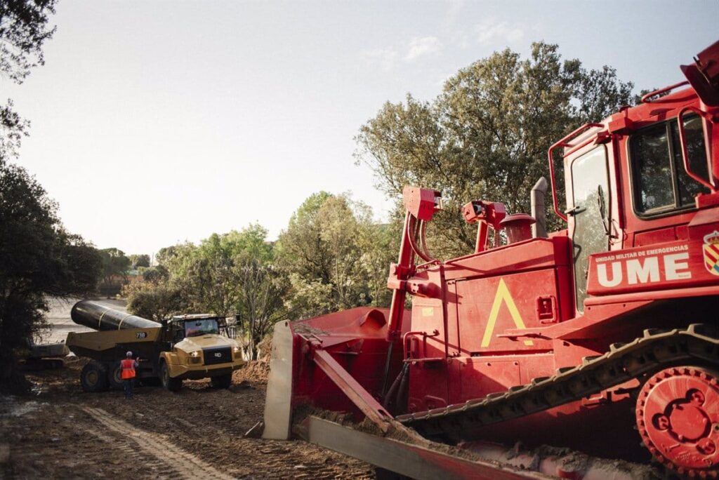 Para asegurar la accesibilidad a la zona, se solicitó ayuda a la Unidad Militar de Emergencia, ya que varios puentes que cruzaban el río Perales estaban inoperativos. Gracias a la colaboración de la UME y la empresa Aqualia, se pudo comenzar a trabajar rápidamente en la estructura alternativa de la tubería.