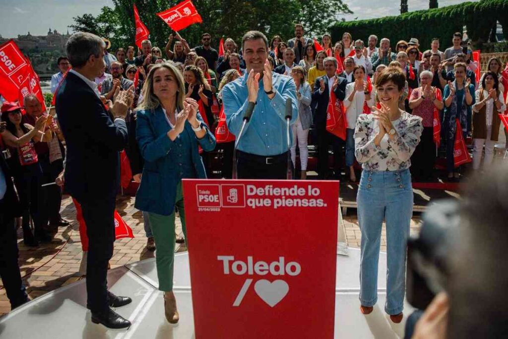 En un acto de campaña en Toledo, Pedro Sánchez ha vaticinado el triunfo del Partido Socialista en la ciudad con Milagros Tolón, en la Diputación de Álvaro Gutiérrez como presidente y en mantener el Palacio de Fuensalida con el líder autonómico. El presidente del Gobierno ha destacado la labor de los alcaldes y concejales socialistas durante la pandemia y ha elogiado la gestión de su partido tras la crisis sanitaria, en la inflación, la reforma de las pensiones y el mercado laboral. Además, ha criticado al Partido Popular por su aprobación del modelo de corrupción, exclusión social y pelotazo en políticas de vivienda.