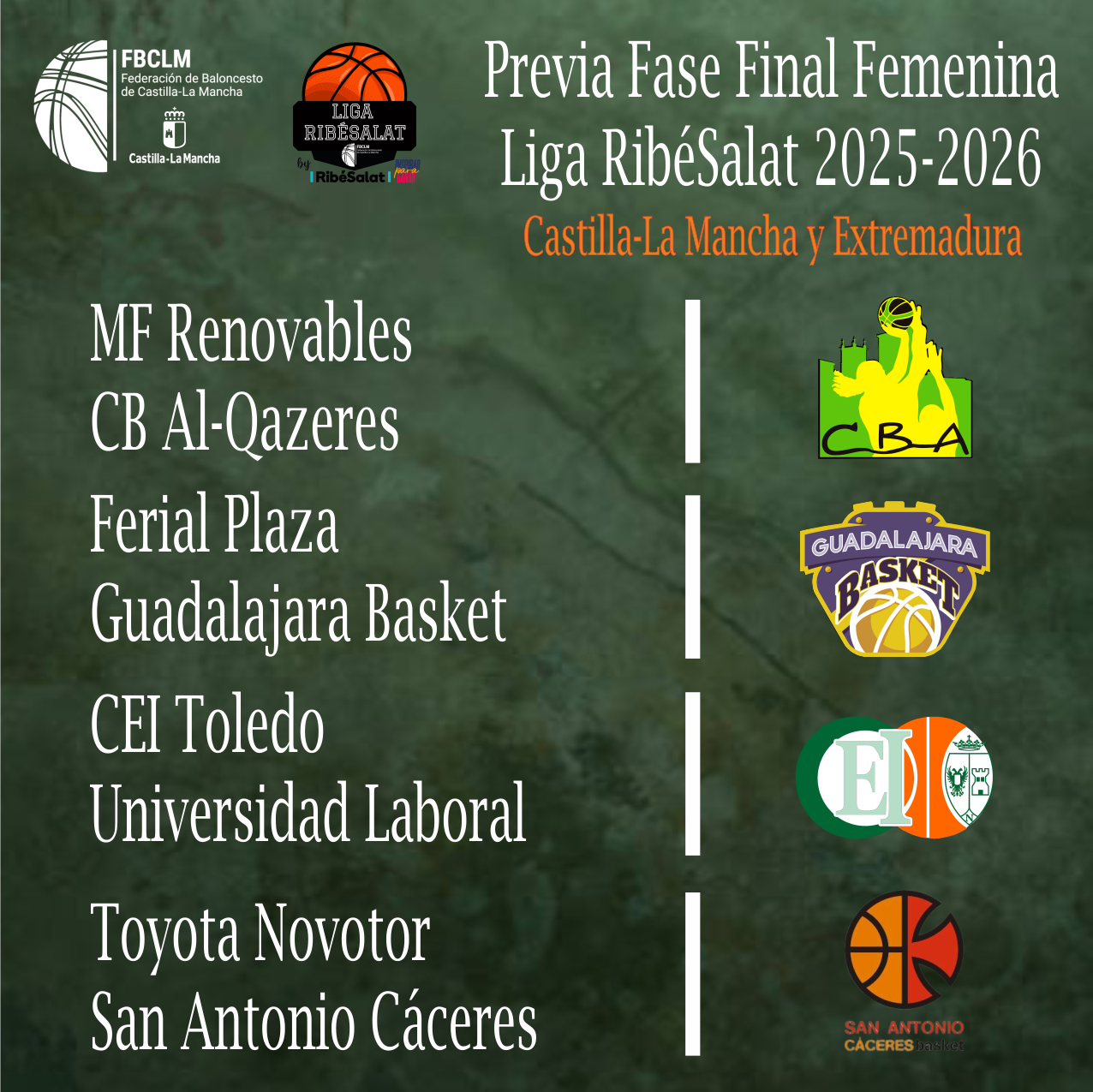 Este fin de semana, Cáceres se convertirá en el epicentro del baloncesto femenino al acoger la Fase Final a 4 de la Liga RibéSalat 2025-2026. Un evento que, por segunda vez, celebra su llegada a la ciudad con la expectativa de coronar al campeón de liga y al equipo que representará a la región en la Fase de Ascenso a la Liga Femenina 2. Con la emoción a flor de piel, tanto aficionados como jugadoras se preparan para vivir un intenso fin de semana deportivo.