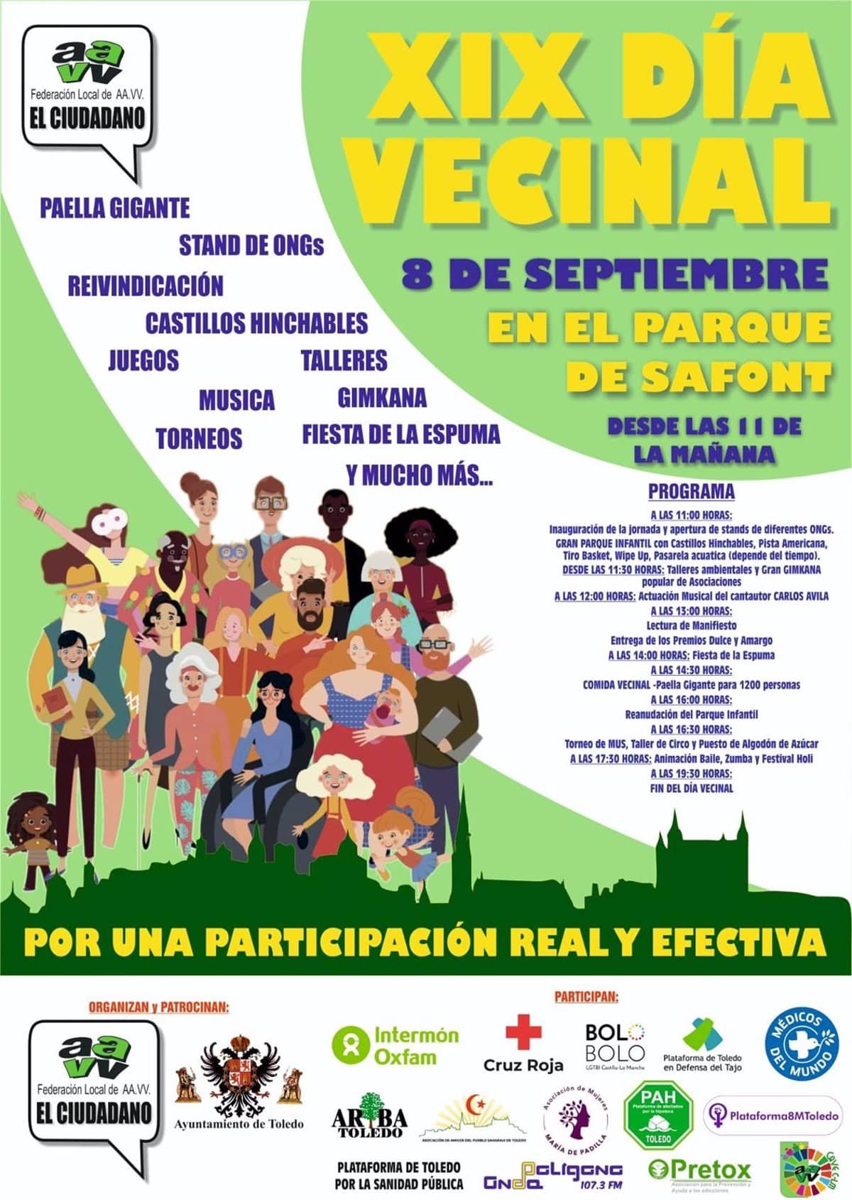 El próximo domingo 8 de septiembre, el parque de Safont en Toledo se prepara para celebrar el XIX Día Vecinal, un evento que dará inicio a las 11:00 horas y que promete ofrecer un día repleto de actividades y diversión para toda la familia. Los asistentes podrán disfrutar de varios stands de ONG y un extenso parque infantil, que incluirá castillos hinchables, una pista americana, tiro de básquet, Wipe Up y una llamativa pasarela acuática.