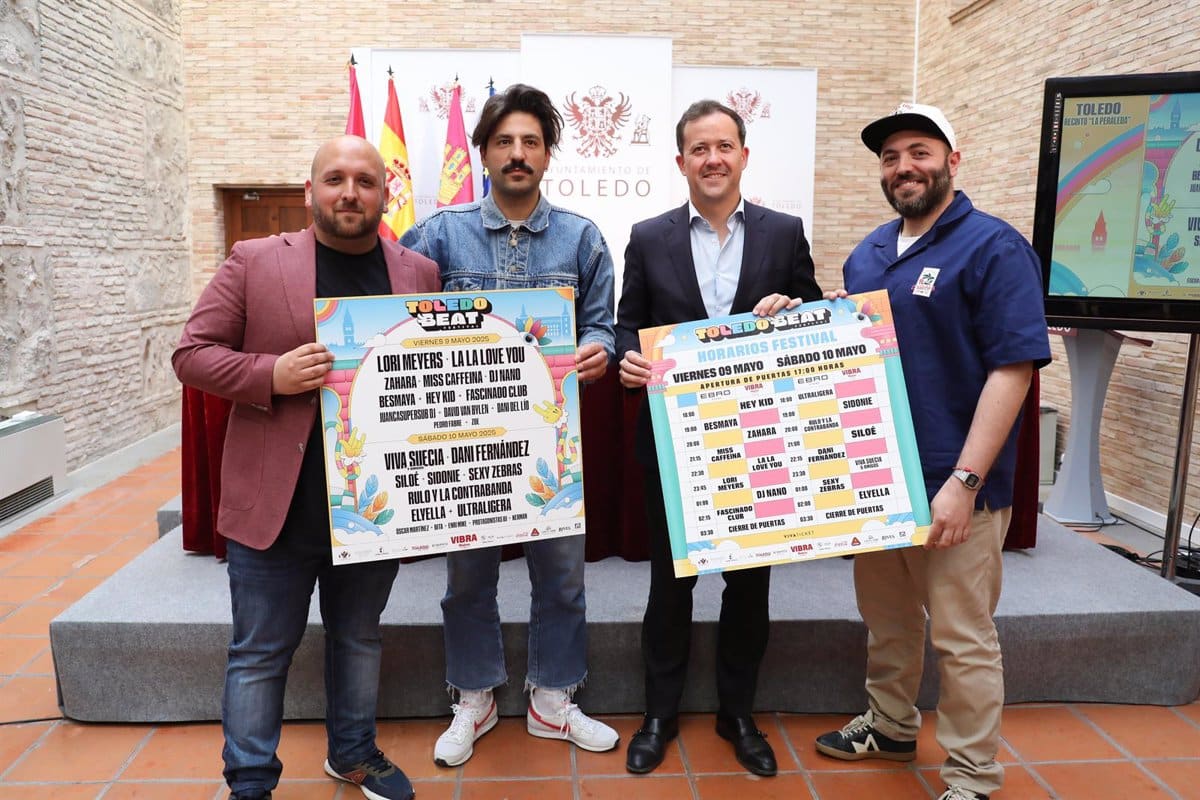 El alcalde de Toledo, Carlos Velázquez, ha resaltado la relevancia del Toledo Beat Festival, que tendrá lugar el próximo viernes y sábado en el recinto ferial de La Peraleda. Durante la presentación oficial del evento en el Ayuntamiento, Velázquez lo describió como «una iniciativa cultural de excelencia que atrae turismo de calidad y al mismo tiempo potencia la economía local».