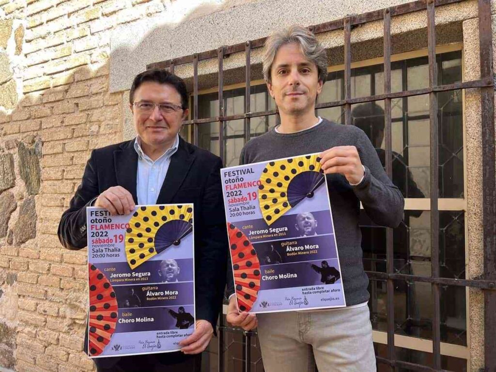 El concejal de Cultura, Teo García, y el coordinador cultural de la Peña Flamenca ‘El Quejío’, Juan Ignacio González, han dado a conocer este miércoles el cartel del Festival Flamenco de Otoño que se celebrará en la Sala Thalía este sábado, 19 de noviembre, con el patrocinio del Ayuntamiento de Toledo.