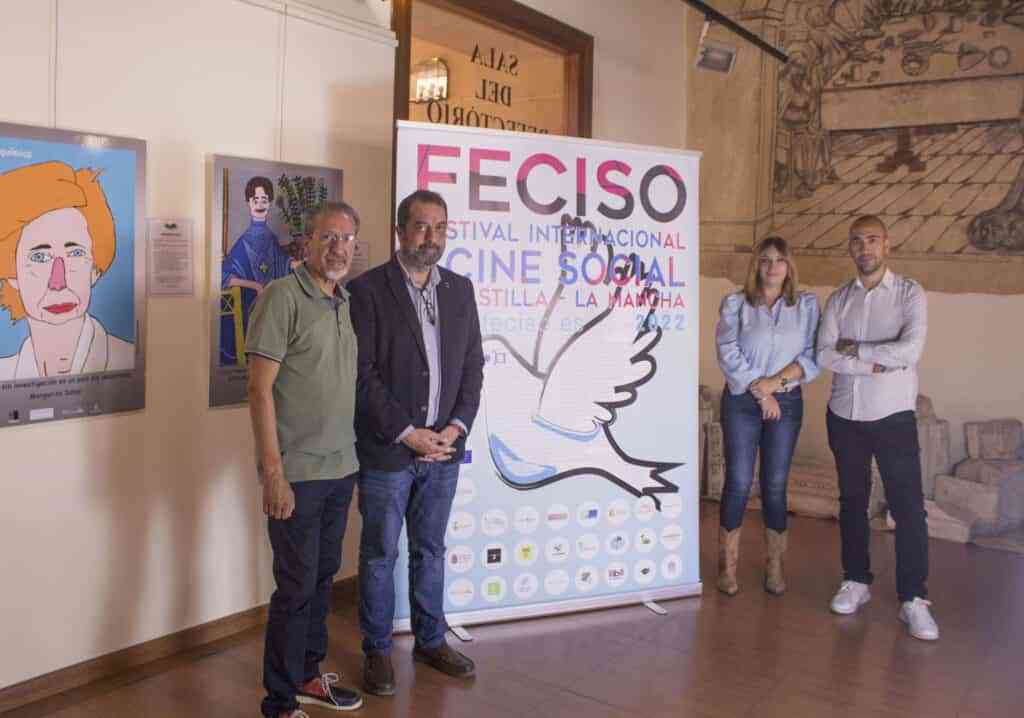 La presentación se llevó a cabo esta mañana y contó con la presencia del alcalde de Torrijos, Anastasio Arevalillo; Rosi Quirós, Concejala de Bienestar Social, Mayores e Igualdad de Torrijos; Fernando de Miguel, Concejal de Cultura y Dinamización Social de Torrijos junto con Tito Cañada, Director del Festival Internacional de Cine Social de Castilla-La Mancha (FECISO).