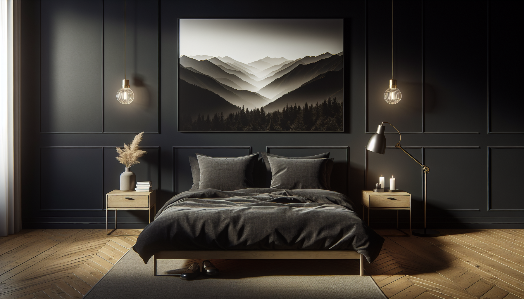 Una ventaja significativa de utilizar paredes oscuras es cómo transforman la percepción del espacio. Aunque pueden hacer que una habitación parezca más pequeña, el secreto está en encontrar el equilibrio. Mobiliario y accesorios en colores claros o metálicos pueden contrarrestar cualquier sensación de estrechez, creando un entorno visualmente atractivo. La incorporación de textiles suaves y acogedores en tonos neutros ofrece un contraste agradable, evitando que el espacio se sienta opresivo.