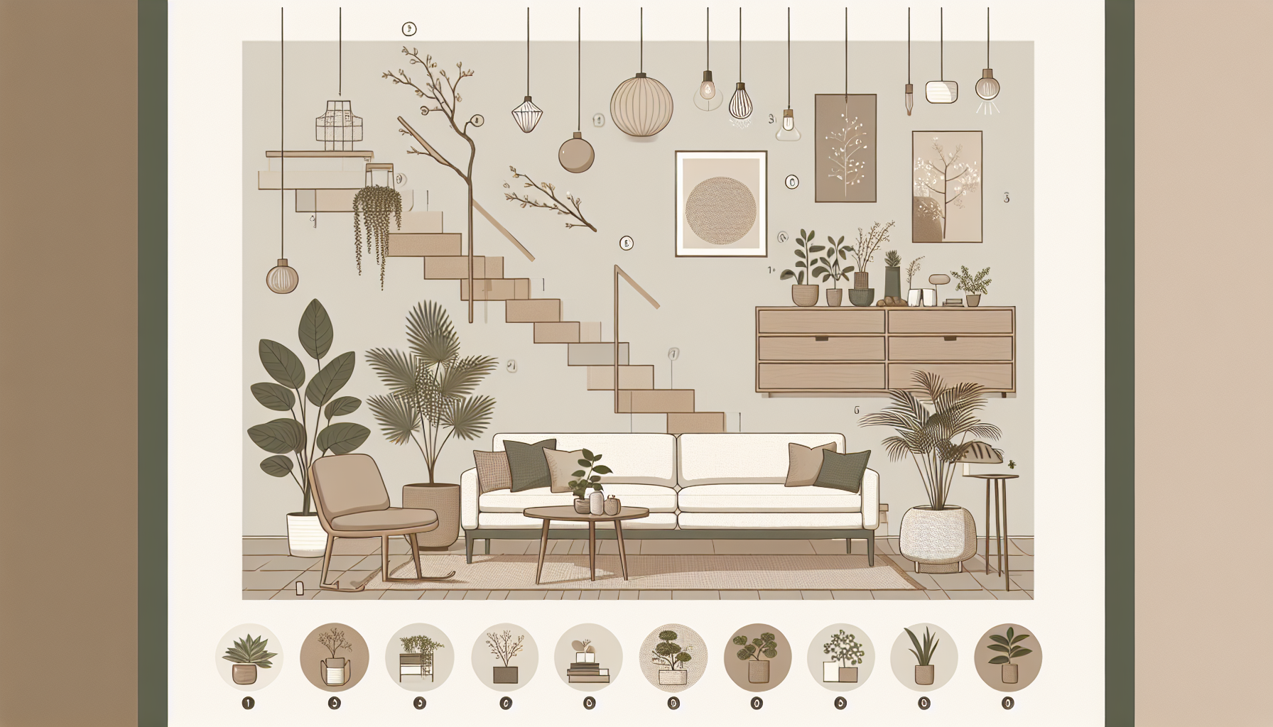 Integrar elementos naturales es esencial. Plantas como monstera y suculentas refrescan y purifican el aire, mientras que materiales como bambú y lino en textiles conectan el interior con la naturaleza. Las almohadas, mantas y cortinas de fibra natural contribuyen a una atmósfera armoniosa.