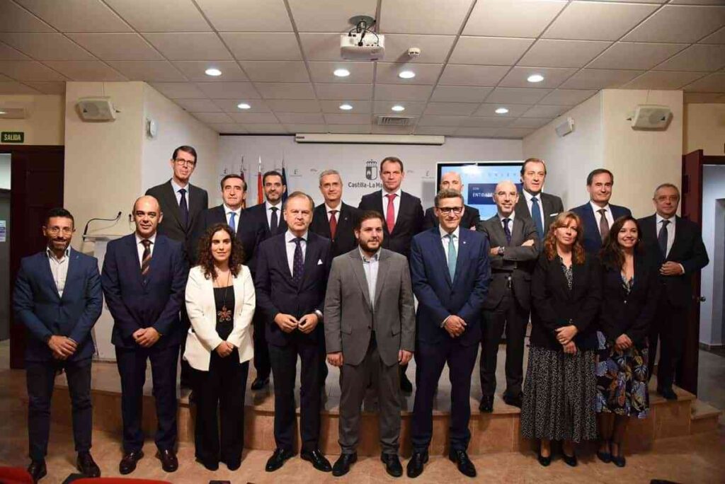 Nacho Hernando ha firmado este convenio con los representantes de 13 entidades financieras que operan en la región, como son el director general de Eurocaja Rural, Víctor Manuel Martín; el director de Relaciones Institucionales de Globalcaja, Antonio González; el director territorial del Banco Santander en Castilla-La Mancha, Miguel Ángel Franco; el director territorial de BBVA en Castilla-La Mancha, Juan Ramón Martínez; el director territorial de Caixabank en Castilla-La Mancha, Jaime Campos; el director regional de Banco Sabadell en Castilla-La Mancha, Rubén Pablo Martín.